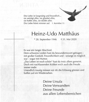 Nach so vielen gemeinsamen Jahren ist Udo nach langer schwerer Krankheit gestorben. Wir konnten und durften miterleben, wie Udos Frau ihn aufopfernd und liebevoll in dieser schweren Zeit begleitet hat.